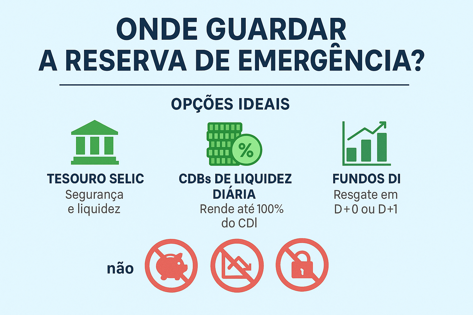Aqui, a regra de ouro é: Segurança e Liquidez acima da Rentabilidade. Esqueça a poupança. As melhores alternativas são: